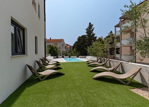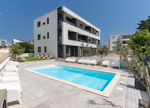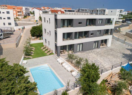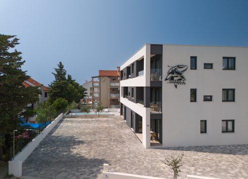 VILLA SHARK 2 with a pool consist of 8 comfortable apartments, 2 apartments are for 6 people each and 6 apartments are for 4 people each. Fully furnished, features free WiFi, Air-conditioning and spacious balcony. It is placed in a quiet street area with a free parking spot.